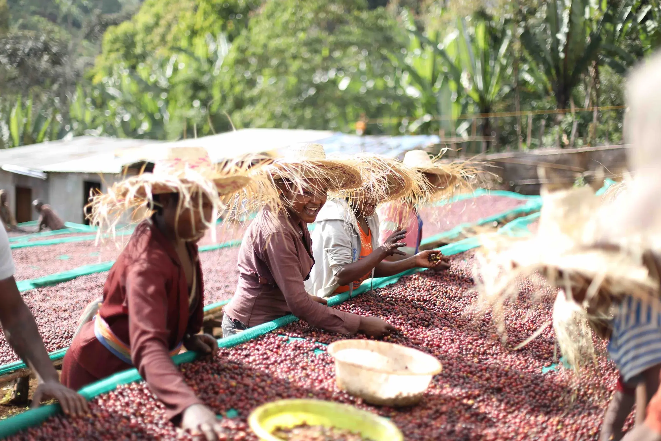 La région de Guji-Hambela, située dans l’Oromia en Éthiopie, est réputée pour ses paysages magnifiques et sa riche biodiversité. Elle couvre environ 1 200 kilomètres carrés. Le café occupe une place centrale dans la vie culturelle de la communauté, avec des rituels uniques et une musique traditionnelle. Les conditions idéales pour la culture du café — sols fertiles, fortes précipitations et hautes altitudes, favorisent la production de cafés de grande qualité. Des petits producteurs, disposant en moyenne de 1,5 hectare, contribuent à cette production. Après la récolte, les cerises de café sont traitées dans des stations de lavage où différentes méthodes de transformation sont appliquées, notamment le natural, le lavé et l’anaérobie.