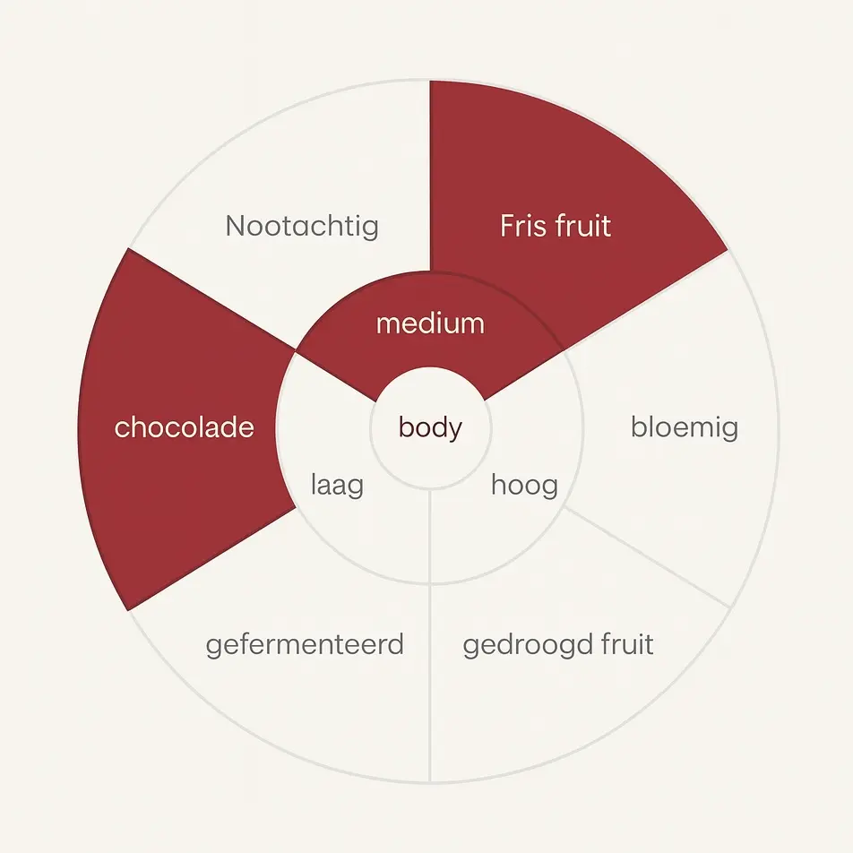 Le Hambela présente un corps que nous décrivons comme moyen, avec des notes de pêche, de chocolat au lait, de bergamote et de thé noir. Ces saveurs appartiennent aux catégories suivantes de la roue des saveurs : fruits frais et chocolaté.